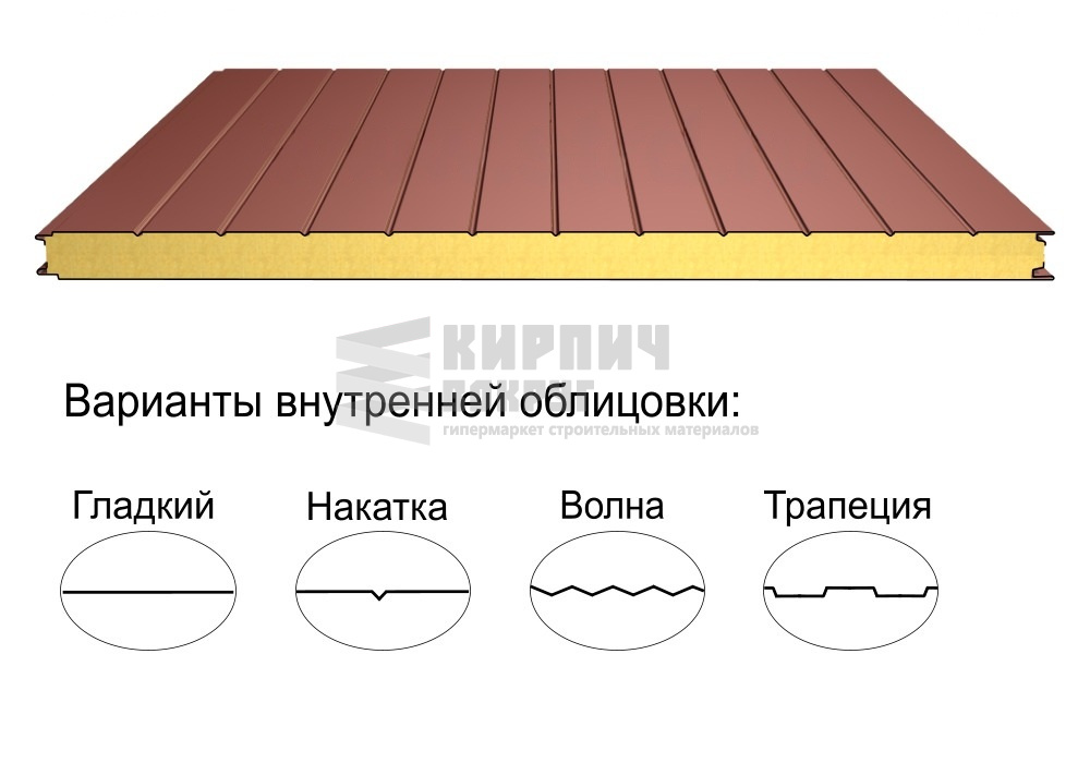 В интернет-магазине "Кирпич Вокруг" Вы можете купить Стеновая трёхслойная сэндвич-панель накатка 50мм 1190мм с видимым креплением минеральная вата Полиэстер Металл Профиль в , а наши специалисты готовы вам помочь с выбором по адресу: , или оказать консультацию по телефону: .